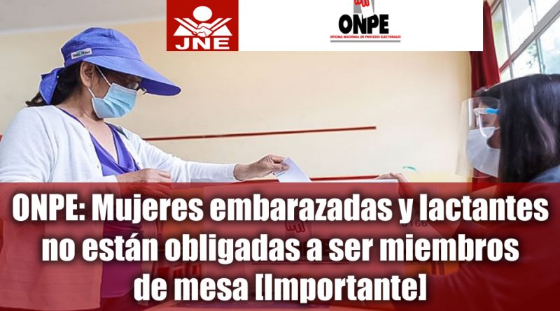 Atención estimado públicos la ONPE designo que las madres lactantes y embarazadas no están en obligación de formar parte de miembros de mesa, esto lo ratifica bajo una resolución jefatural publicada en el diario el peruano, esto es vigente solo en la elecciones 2021.