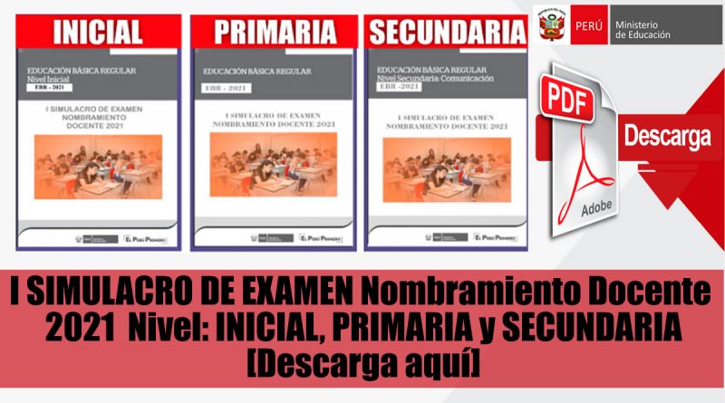 Excelente SIMULACRO DE EXAMEN Nombramiento Docente 2021 para INICIAL, PRIMARIA y SECUNDARIA [Descarga aquí PDF]