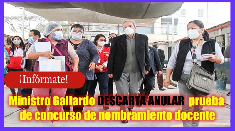 El ministro de Educación, Carlos Gallardo, descartó la posibilidad de anular la prueba escrita del concurso de nombramiento docente para el ingreso a la Carrera Pública Magisterial y exigió una exhaustiva investigación para esclarecer las presuntas irregularidades registradas el sábado pasado en algunos centros de evaluación.