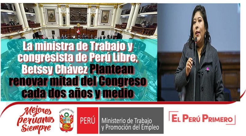 La ministra de Trabajo y congresista de Perú Libre, Betssy Chávez, presentó un proyecto de ley de reforma constitucional por el cual plantea la renovación del Congreso por mitades cada dos años y medio.