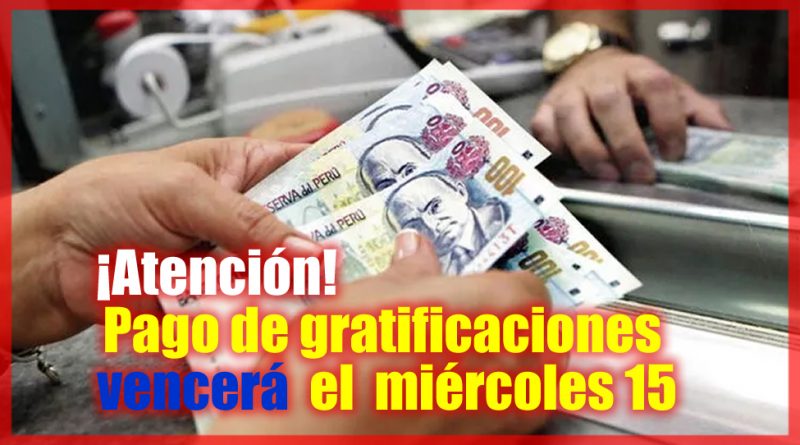 Querido y apreciado publico en general nuestra pagina educaciónueva no solamente te brinda materiales educativos sino también noticias de interés publico es por ello que el día de hoy les mostramos una noticia que te puede interesar y es sobre el pago de gratificaciones que este miércoles 15 de diciembre vencerá para información lea líneas abajo. Así mismo agradecemos al diario el peruano por sus noticias al tanto.