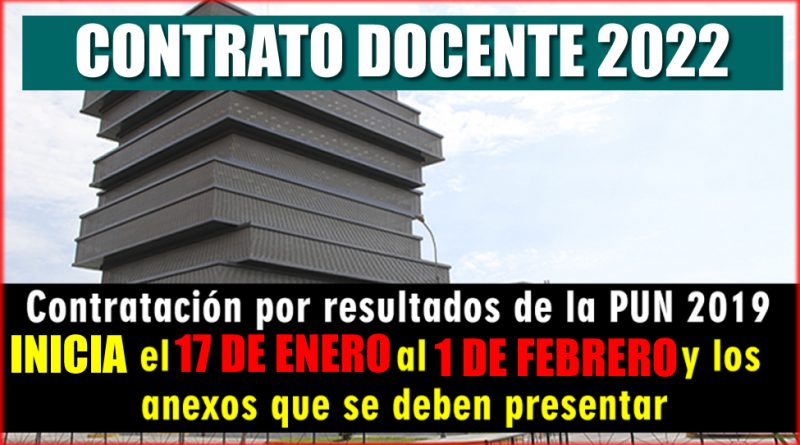 CONTRATO DOCENTE 2022: Contratación por resultados de la PUN 2019 INICIA el 17 de ENERO al 01 de FEBRERO y los ANEXOS que se deben presentar [Mas información aquí]