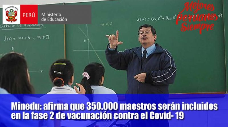 ActualidadNOTICIAS 19 febrero, 2021 Somos Docentes Minedu: afirma que 350.000 maestros serán incluidos en la fase 2 de vacunación contra el Covid- 19[Infórmate aquí] Read More