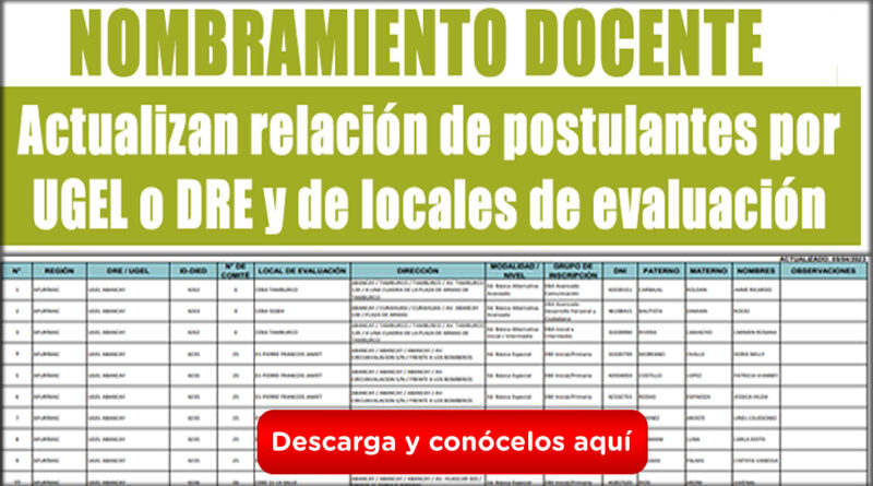 ActualidadContrato DocenteDocentesMINEDUNombramiento Docente 25 junio, 2023 Somos Docentes NOMBRAMIENTO DOCENTE 2022: Actualizan relación de postulantes por UGEL o DRE y de locales de evaluación organizados por región [conócelos aquí] Read More