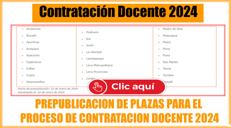 ActualidadContrato DocenteDocumentos para docentesMINEDUNormativa 24 enero, 2024 Somos Docentes Prepublicación de plazas para la contratación docente 2024 (Actualizado al 24 de enero 2024) Read More