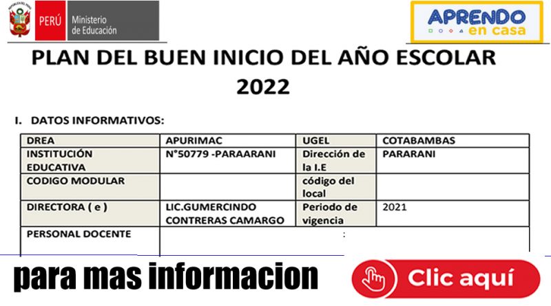 PLAN DEL BUEN INICIO DEL AÑO ESCOLAR 2022 [infórmate aquí]