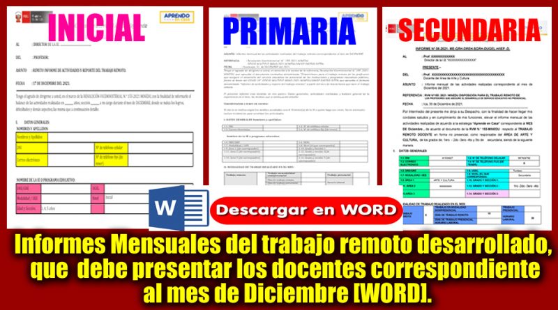 ActualidadAPRENDO EN CASAContrato DocenteDocentesDocumentos para docentesEducación InicialEducación PrimariaEducación SecundariaRecursos Educativos 20 diciembre, 2021 Somos Docentes EXCELENTES MODELOS de Informes Mensuales del trabajo remoto desarrollado, que debe presentar los docentes de Inicial – Primaria- Secundaria correspondiente al mes de Diciembre [WORD]. Read More