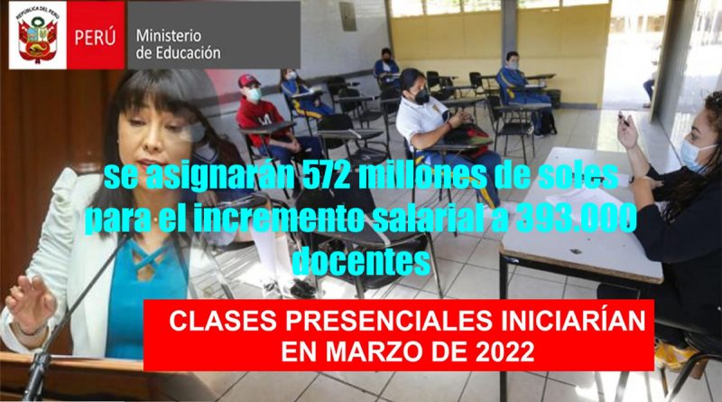 ActualidadDocentesNOTICIASRecursos Educativos 26 octubre, 2021 Somos Docentes [gabinete de Mirtha Vásquez Plantean retorno a las clases presenciales desde marzo del 2022] se asignarán 572 millones de soles para el incremento salarial a 393.000 docentes. Read More